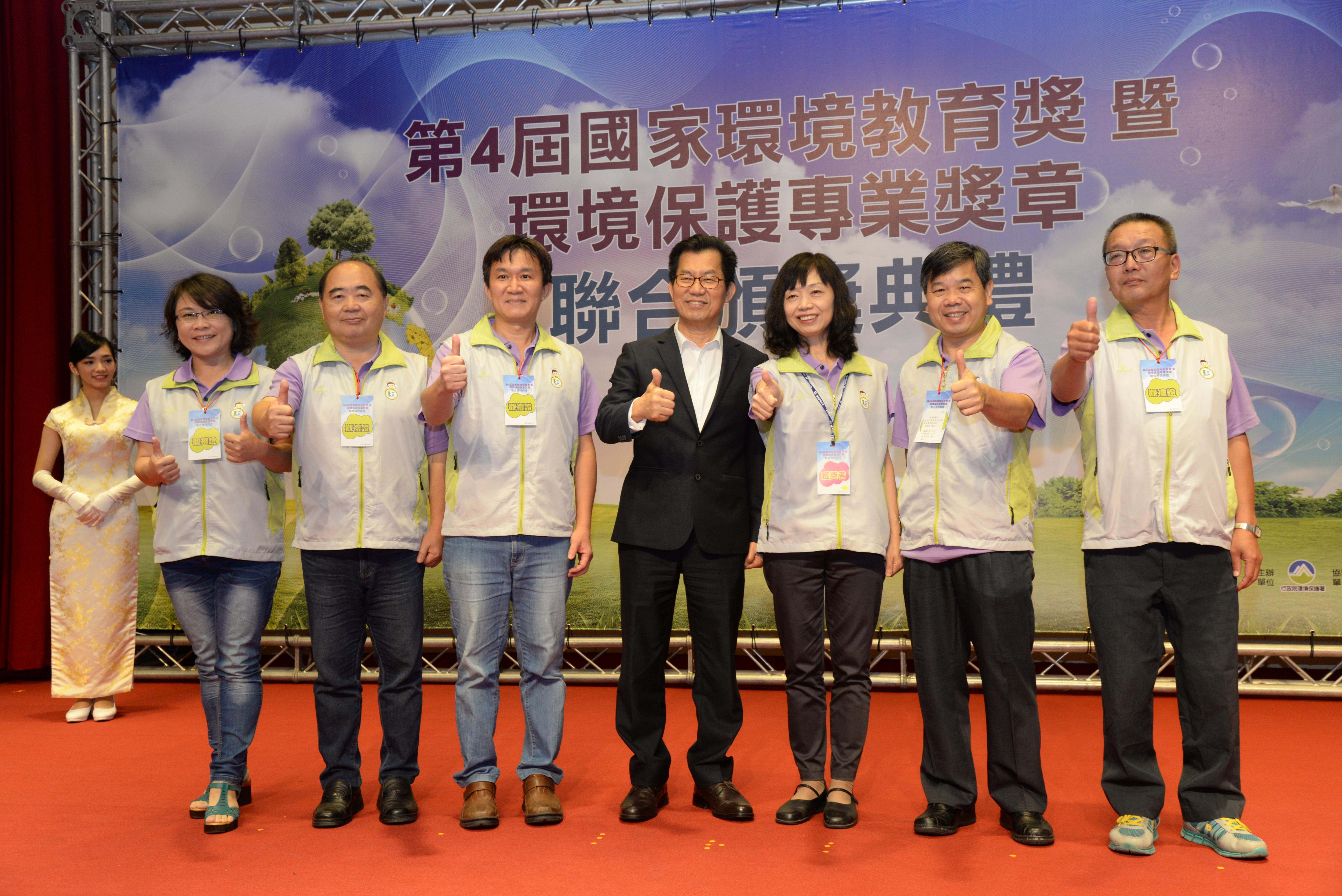 榮獲第4屆國家環境教育獎-機關(構)組優等獎與署長頒獎現場合影